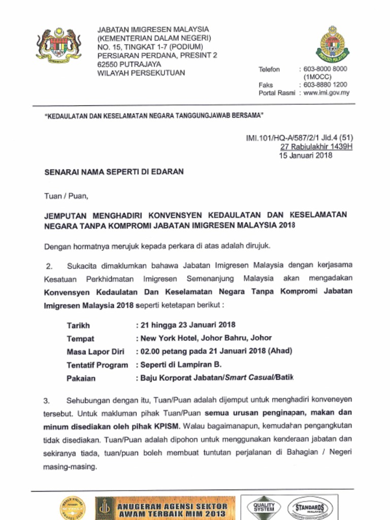 Jabatan Imigresen Malaysia Wilayah Persekutuan Kuala Lumpur Surat Akuan